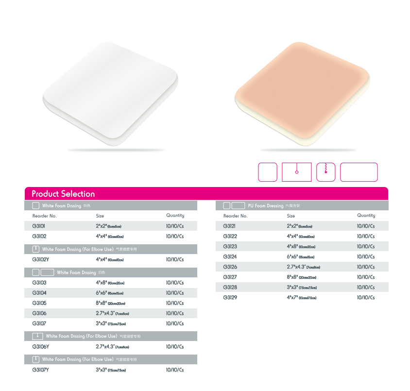 Le medicazioni in schiuma sono prodotti morbidi e imbottiti per la cura delle ferite, realizzati in materiale assorbente e poroso. Il loro punto di forza risiede nel gestire il drenaggio della ferita da moderato a intenso mantenendo il letto della ferita adeguatamente umido per accelerare la guarigione. La morbida schiuma fornisce ammortizzazione e protezione e la superficie antiaderente consente una rimozione indolore.